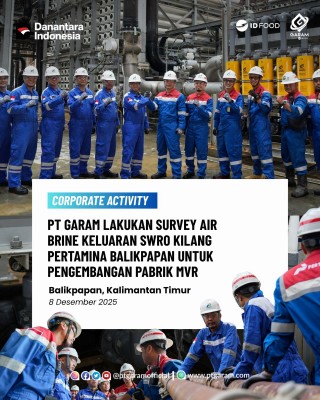 Balikpapan, 8 Desember 2025 — PT Garam melakukan survey teknis terhadap air brine hasil proses Seawater Reverse Osmosis (SWRO) di Kilang Pertamina Balikpapan sebagai langkah strategis untuk mendukung rencana pengembangan pabrik garam berbasis teknologi Mechanical Vapor Recompression (MVR).